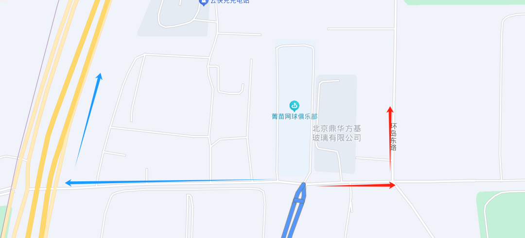 红色路线为分流路线,现已封闭;蓝色为去往京密路方向路线/百度地图